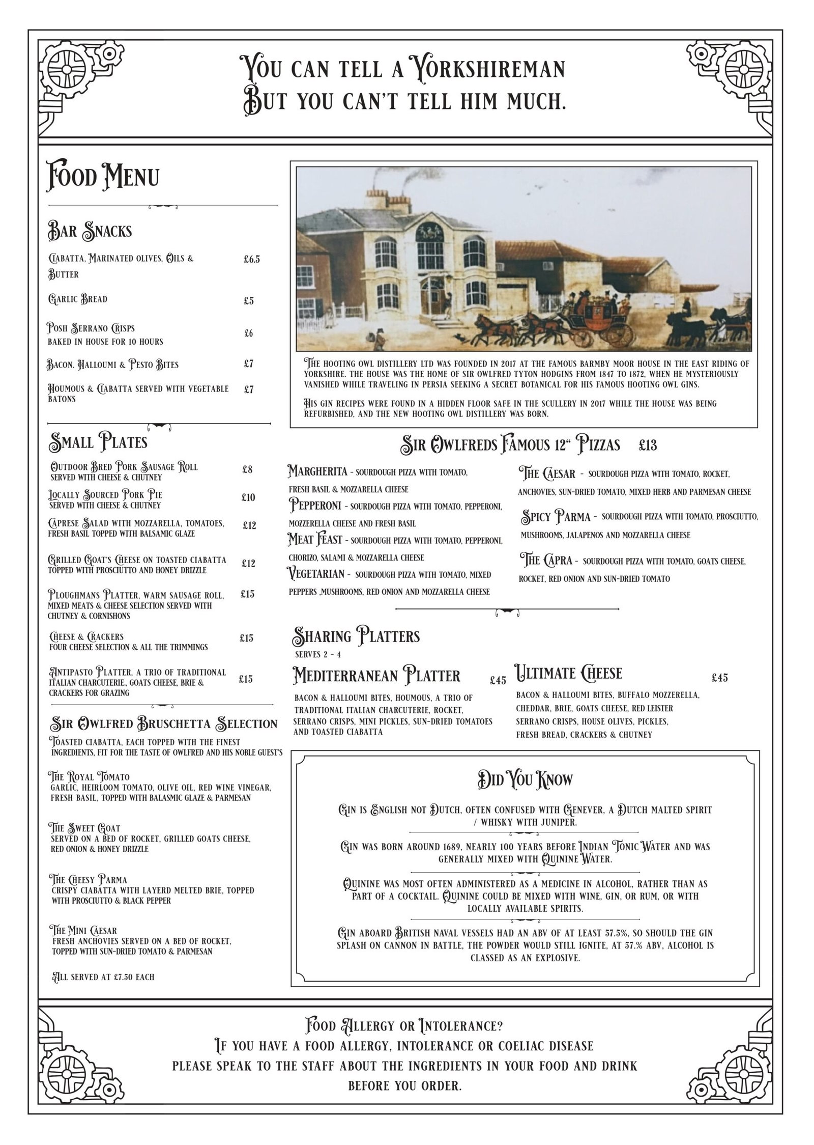 If you have a Food Allergy, Intolerance or Coeliac Disease, please contact us in advance or speak to a member of our staff about the ingredients in your food before placing your order.