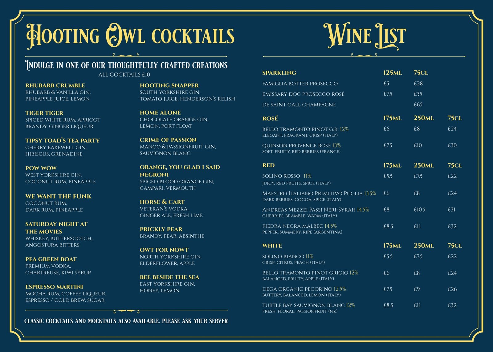 Learn about the history of The Hooting Owl and experience the journey from concept to glass -understanding how ingredients are meticulously selected and blended to create the finest spirits.